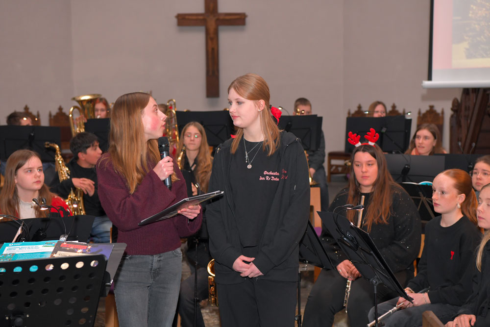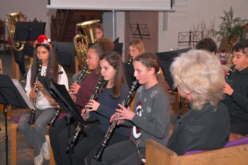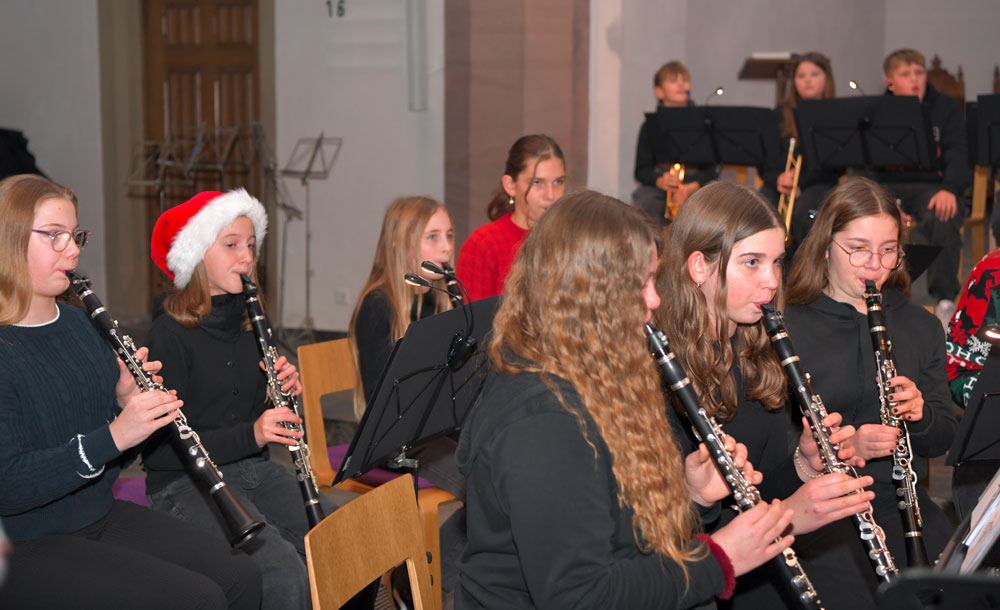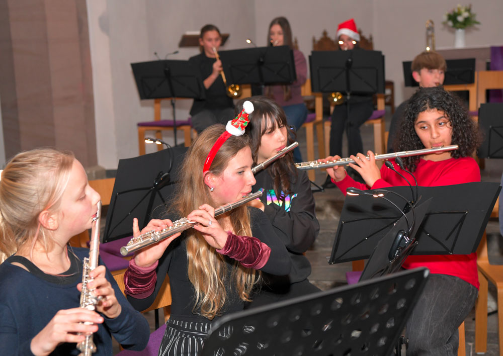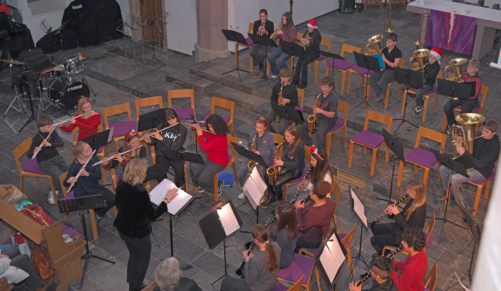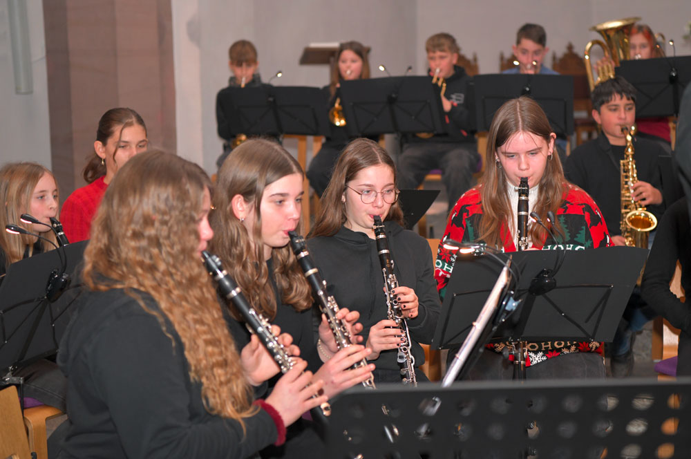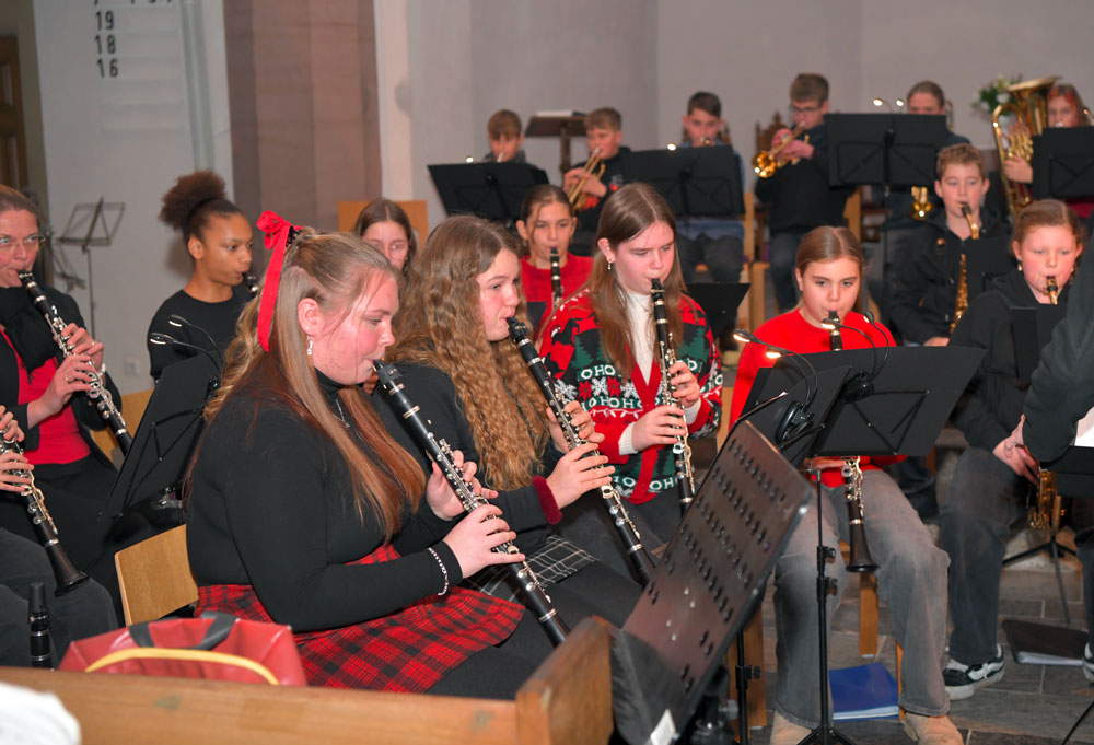 Das Vororchester trug mit „Alle Jahre wieder“ und „Cantus Angelus“ zur besinnlichen Stimmung bei. Anschließend begeisterte das große Orchester das Publikum mit dem Programm „Das junge Weihnachtskonzert“. Mit bekannten Melodien wie „Winter Wonderland“, „Rudolph, the Red-Nosed Reindeer“ und verschiedenen Christmas Spirituals sorgten die Musikerinnen und Musiker für festliche Höhepunkte.