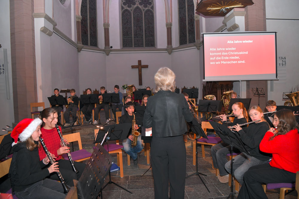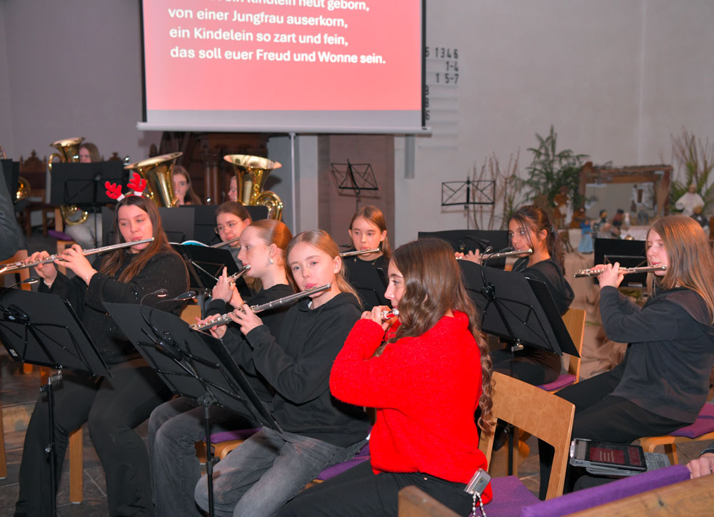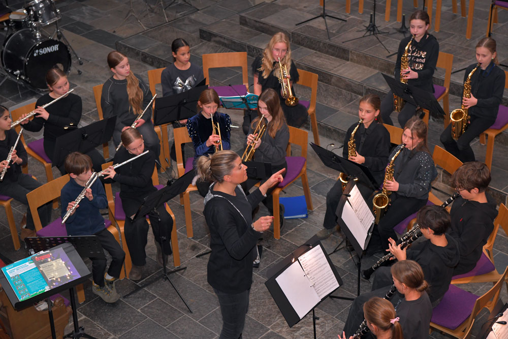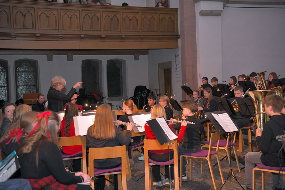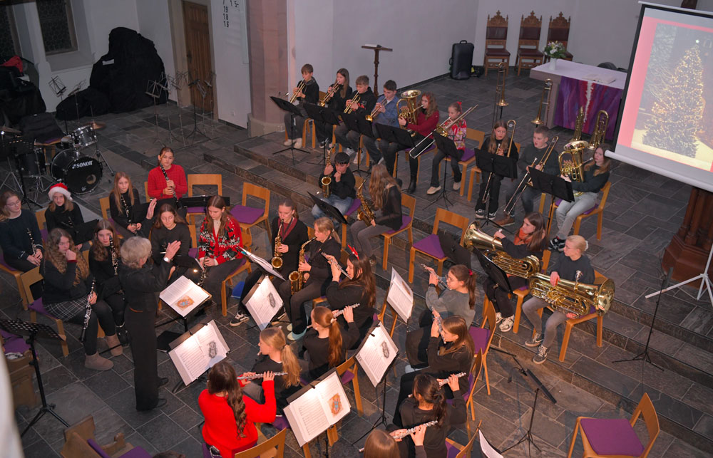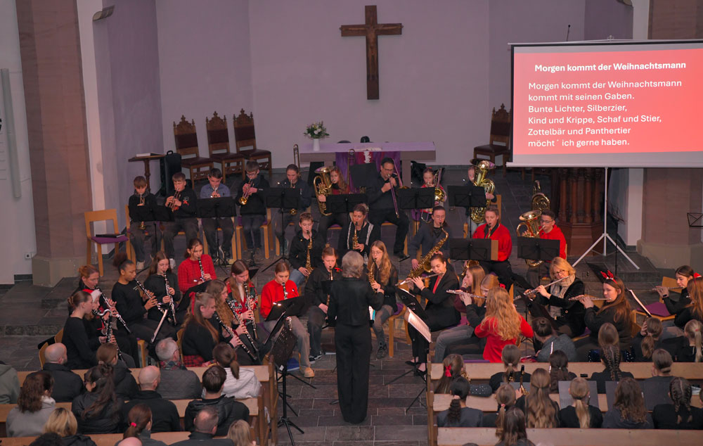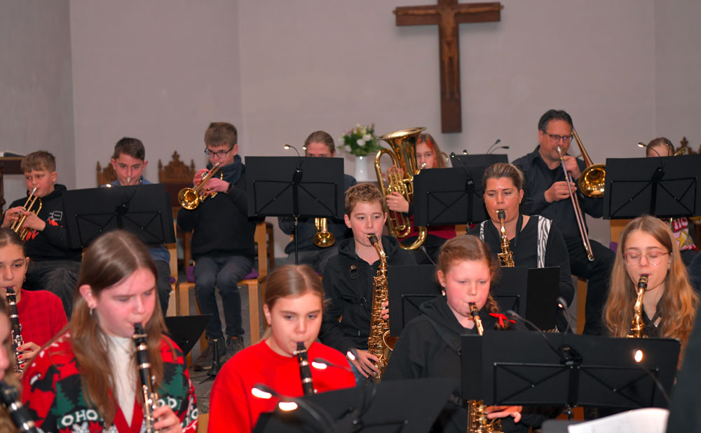 Das Vororchester trug mit „Alle Jahre wieder“ und „Cantus Angelus“ zur besinnlichen Stimmung bei. Anschließend begeisterte das große Orchester das Publikum mit dem Programm „Das junge Weihnachtskonzert“. Mit bekannten Melodien wie „Winter Wonderland“, „Rudolph, the Red-Nosed Reindeer“ und verschiedenen Christmas Spirituals sorgten die Musikerinnen und Musiker für festliche Höhepunkte.