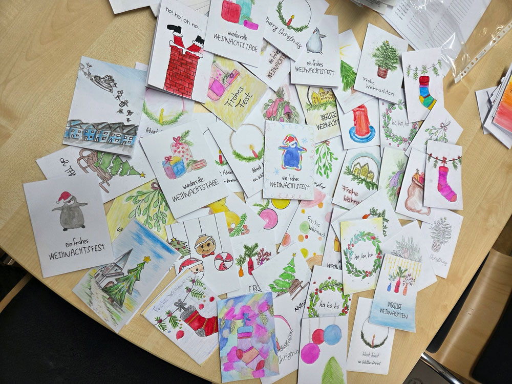 Schüler der Realschule 1 gestalten Weihnachtskarten mit Bewohnern des Hauses am Weinberg II der Fürstin-Pauline-StiftungDetmold. In der Vorweihnachtszeit wurde es kreativ und herzlich im Haus am Weinberg II der Fürstin-Pauline-Stiftung: Schülerinnen und Schüler der Realschule 1 Detmold trafen sich dort mit Bewohnerinnen und Bewohnern des Altenheims, um gemeinsam liebevoll gestaltete Weihnachtskarten für den guten Zweck zu basteln.