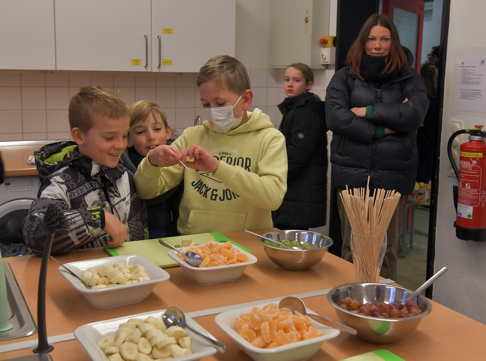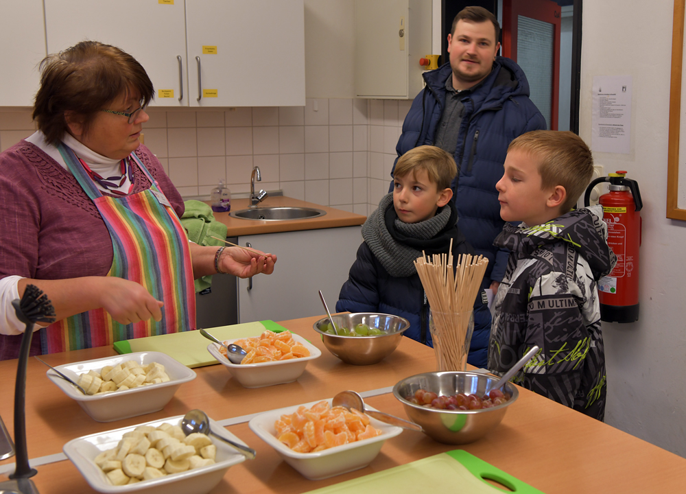 Fruchtspieße mit und ohne Schokolade in der Küche